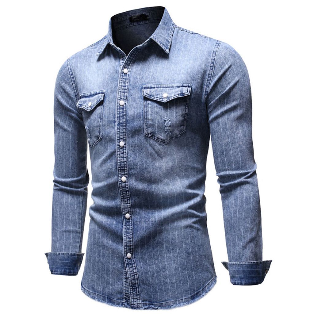 2020 Fashion Mens Denim Shirt Long Sleeve Plus Size Jeans Cardigan