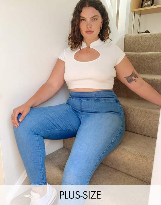 Urban Bliss Plus Super Stretch Pull On Skinny Jeans In Blue Asos