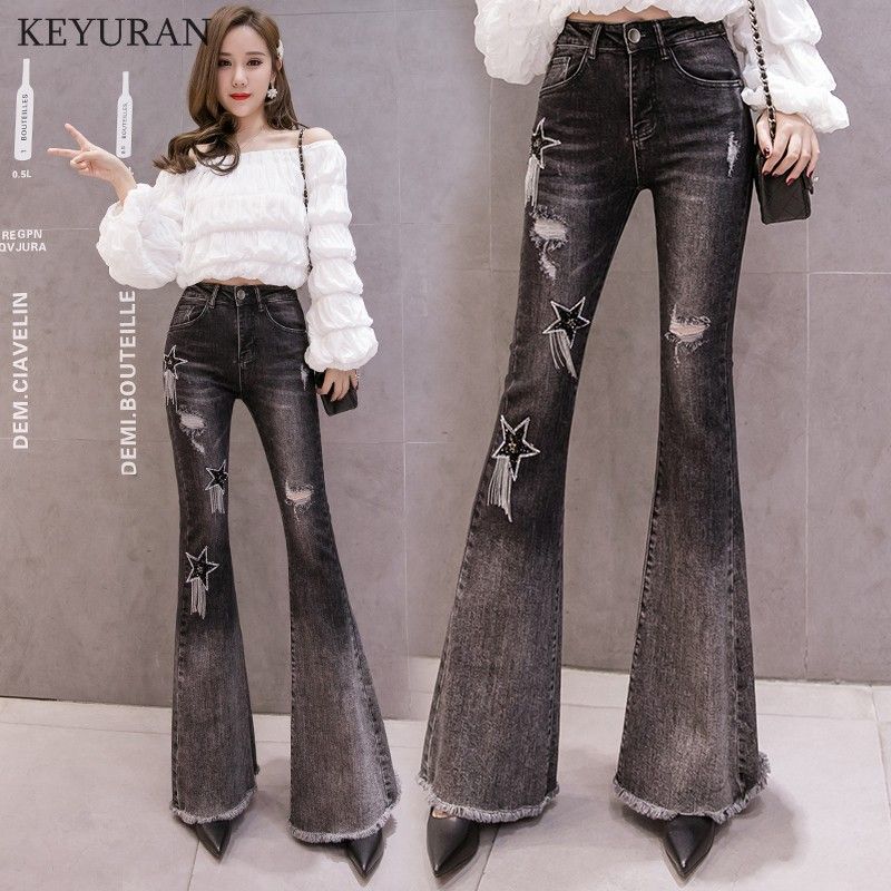 2020 High Waist Flare Mom Jeans Boyfriend Jeans For Women Hole