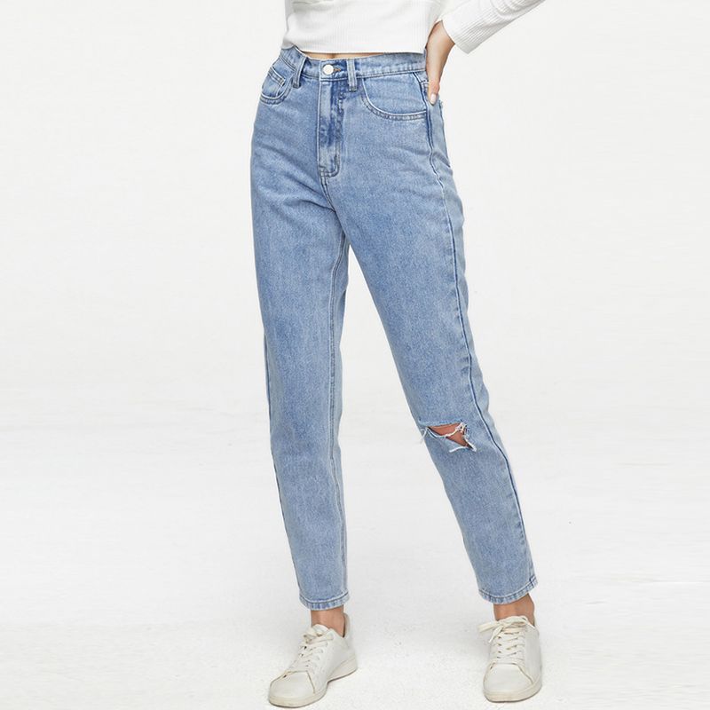 2020 Ripped Mom Jeans Women Fashion High Waist Jeans Light