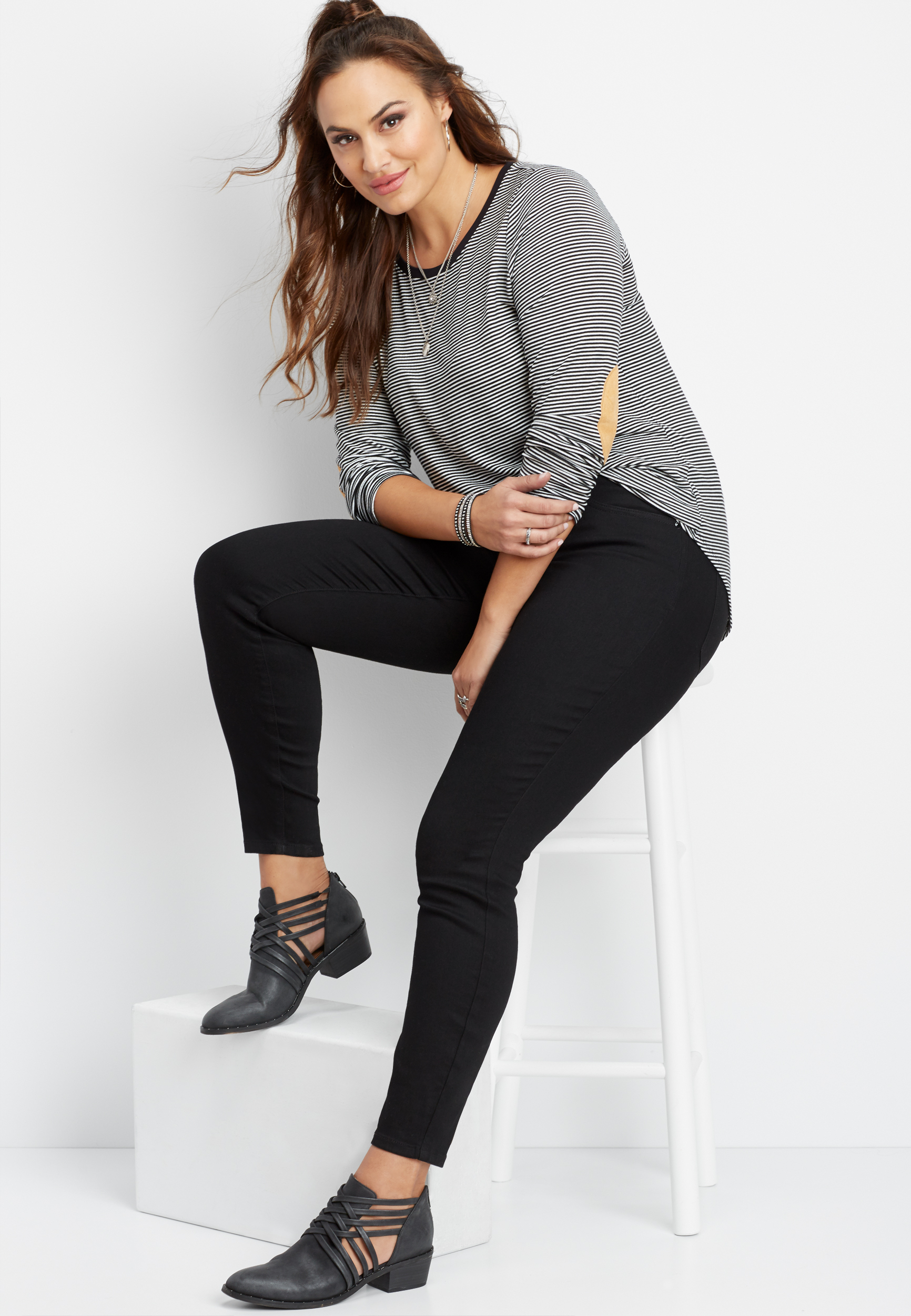 Black skinny jeans outfit plus size. Wear heels or wedges to elongate your legs to appear taller and complement your outfit. Plus size distressed jeans. Or instead of dark blue jeans you could shop for a great fitting inky pair of black skinny jeans which can be styled in your wardrobe just as you would wear a.