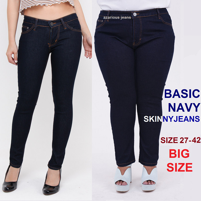 Jual Celana Jeans Wanita Jumbo Basic Skinny Pants Navy Blue Big