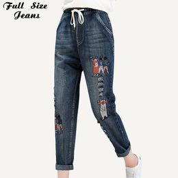 4611 Harem Jeans Women Fashion Vintage Elastic Waist Big Size