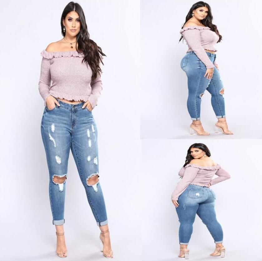 Plus Size Women Fashion Boyfriend Jeans New High Waist Ripped