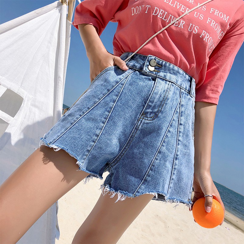 M 4xl Women S Plus Size High Waist Denim Shorts Two Buttons Korean