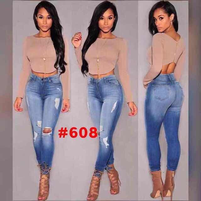 608 Jeans Ripped High Waist Big Plus Size Pants Stretchable