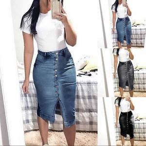 Plus Size Womens Denim Jeans Skirt High Waist Tight Bodycon Button