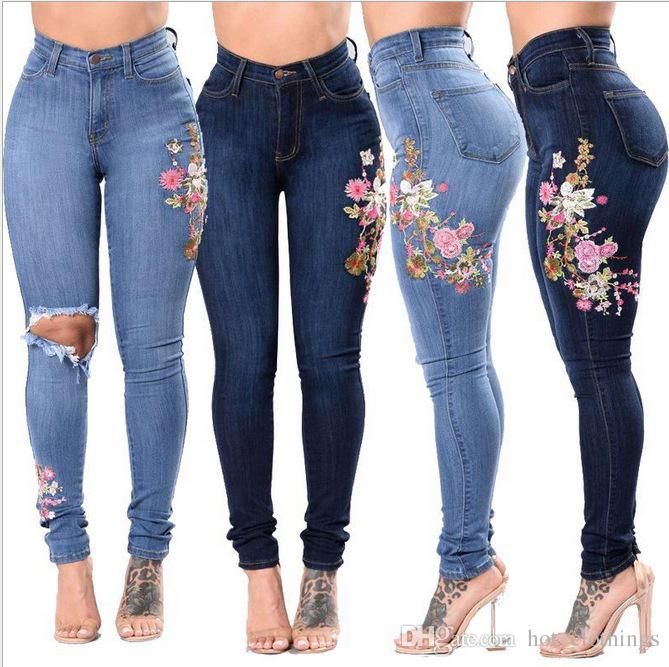 2018 Stretch Embroidered Jeans For Women Elastic Flower Jeans