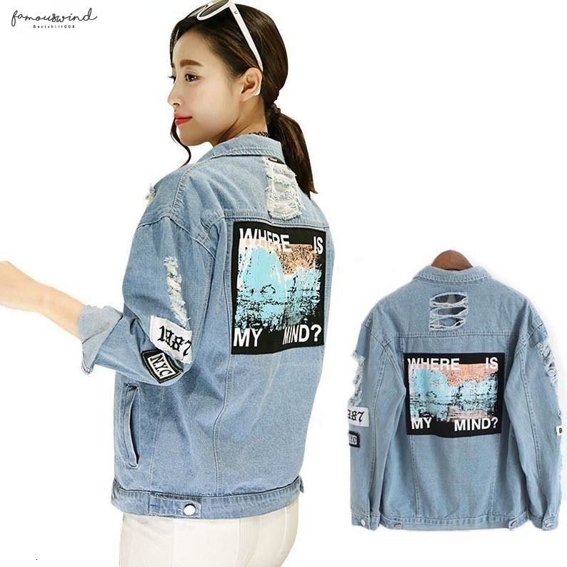 Print Bomber Jacket Women Boodinerinle Spring Autumn Denim Jacket