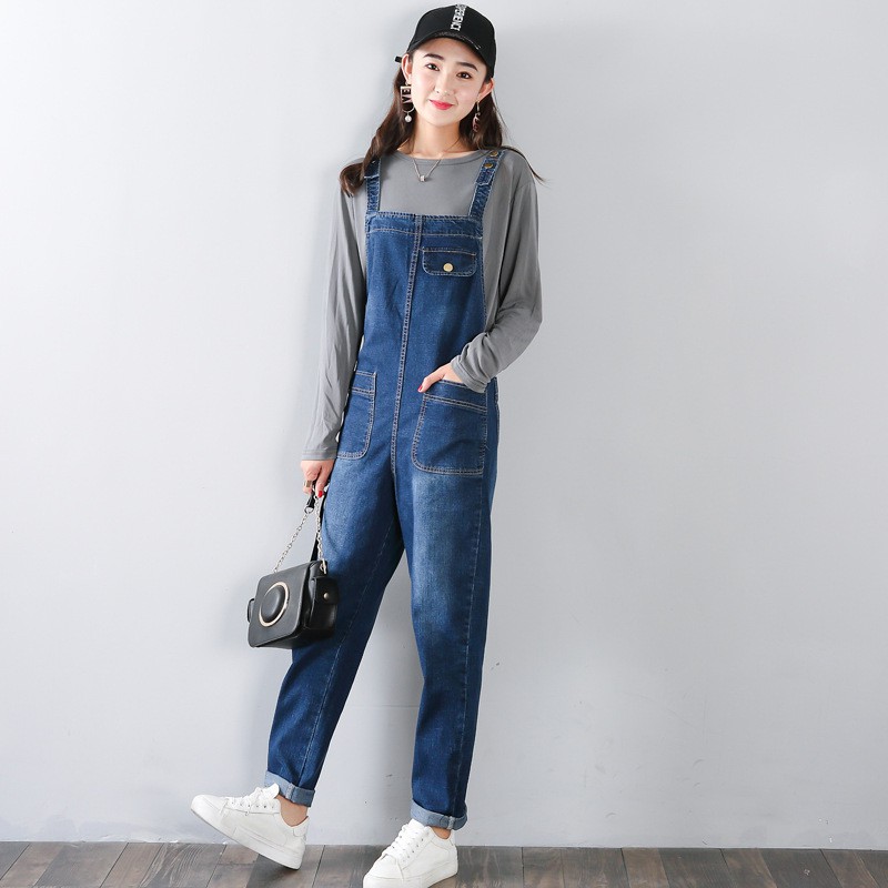 New Jumpsuit Women Loose Plus Size Jean Jumpsuits Big Pockets