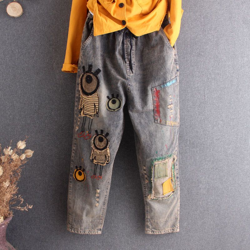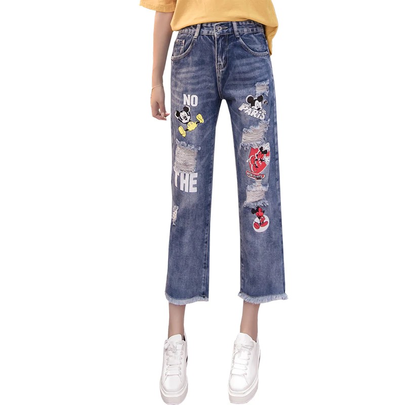 Cartoon Mickey Mouse Jeans Plus Size Distressed Ripped Boyfriend