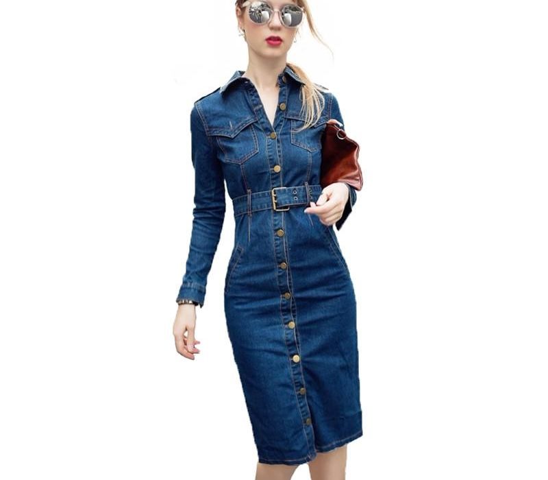 2020 Office Sexy Denim Dress Plus Size S 4xl Long Sleeve Jeans