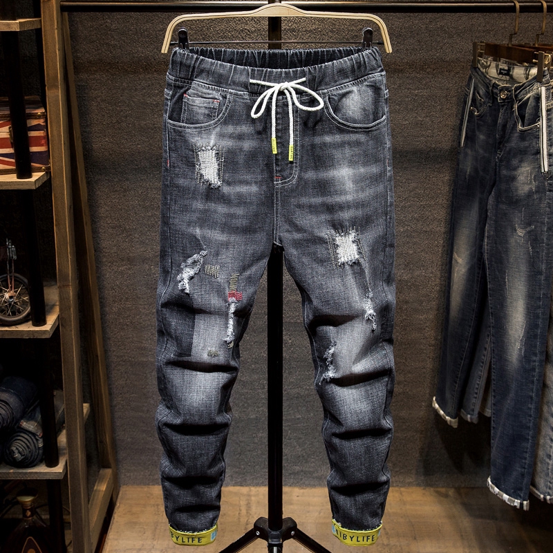 Fashion Plus Size Men S Ripped Jeans Patches Drawstring Waist