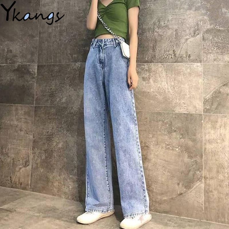Liberjog White Wide Leg Jeans Women High Waist Loose Straight