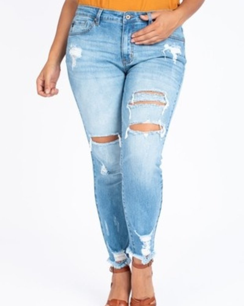 Plus size distressed jeans. Moda xpress high rise skinny jeans classic ripped distressed jeans plus size jeans. If theres one thing we know for sure its that denim will never go out of style.