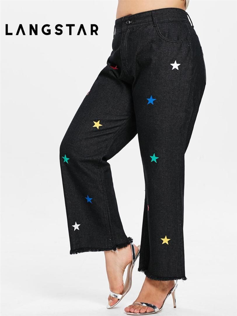 2020 New Plus Size Star Pattern Frayed Hem Jeans Women Casual Slim