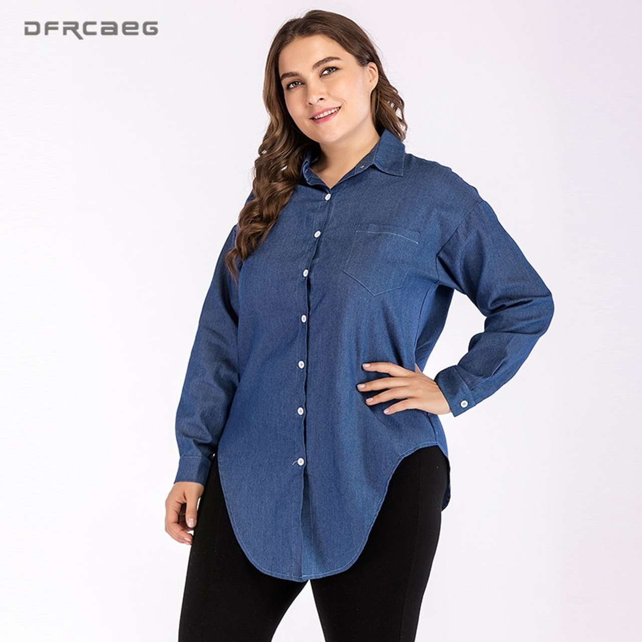 Blue Irregular Plus Size Denim Shirt Female 2018 Autumn Women