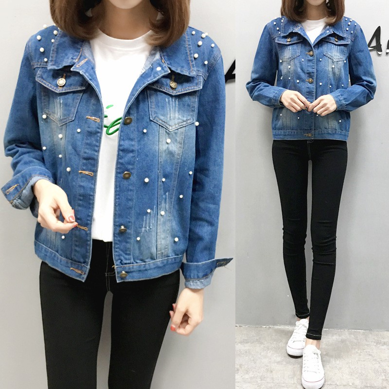 5xl Plus Size Mutiara Jeans Jaket Untuk Wanita Vintage Denim