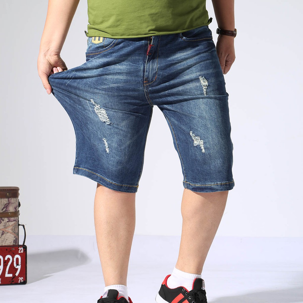 Plus Size Men Ripped Jeans Shorts Vintage Denim Pants Below Knee
