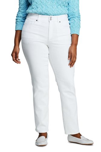 Women S Plus Size Mid Rise Straight Leg Jeans White Lands End
